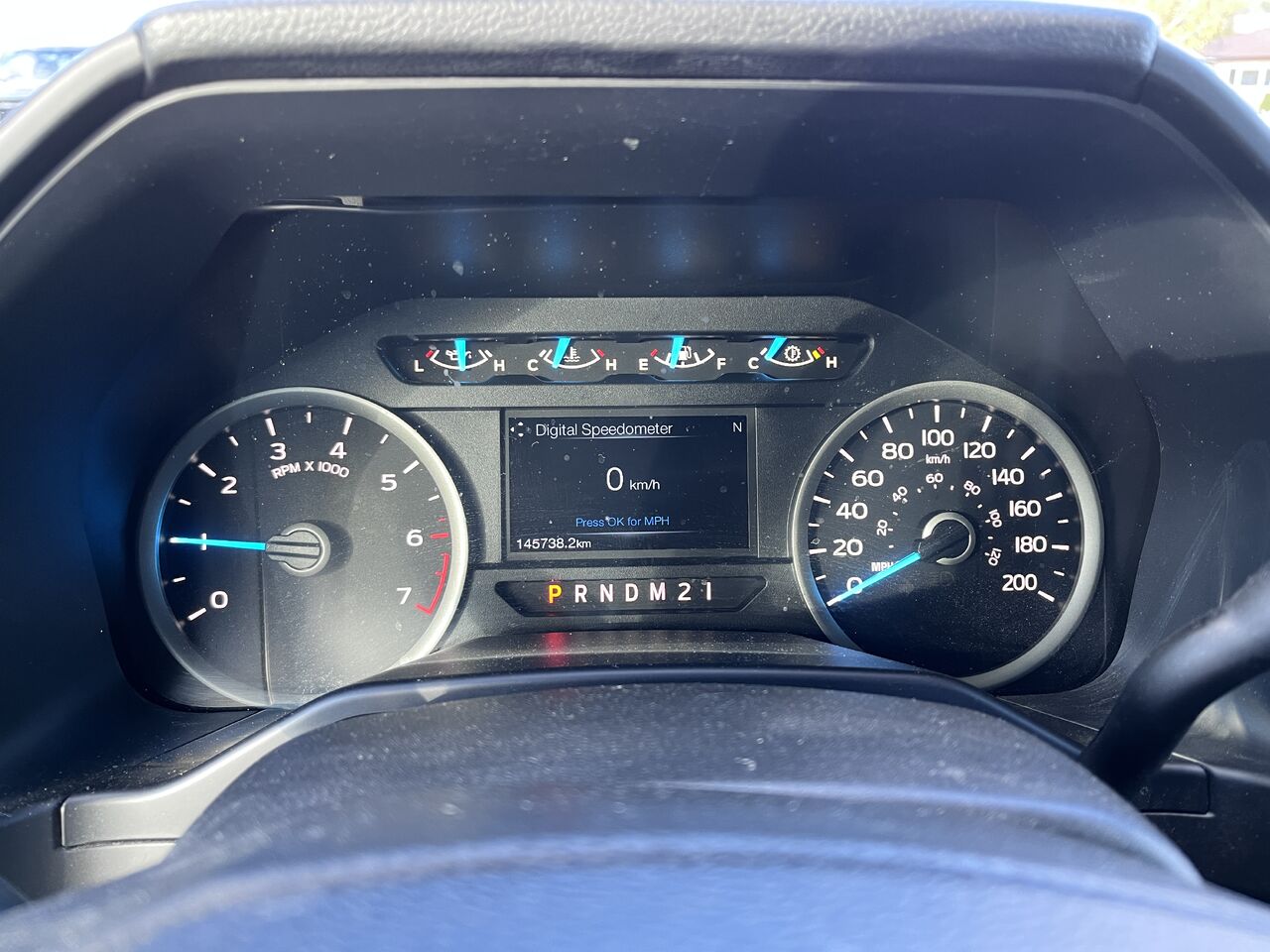 instruments -comprend : indicateur de vitesse, odomètre, voltmètre, pression d'huile, température du liquide de refroidissement du moteur, tachymètre, température du liquide de transmission et compteur journalier